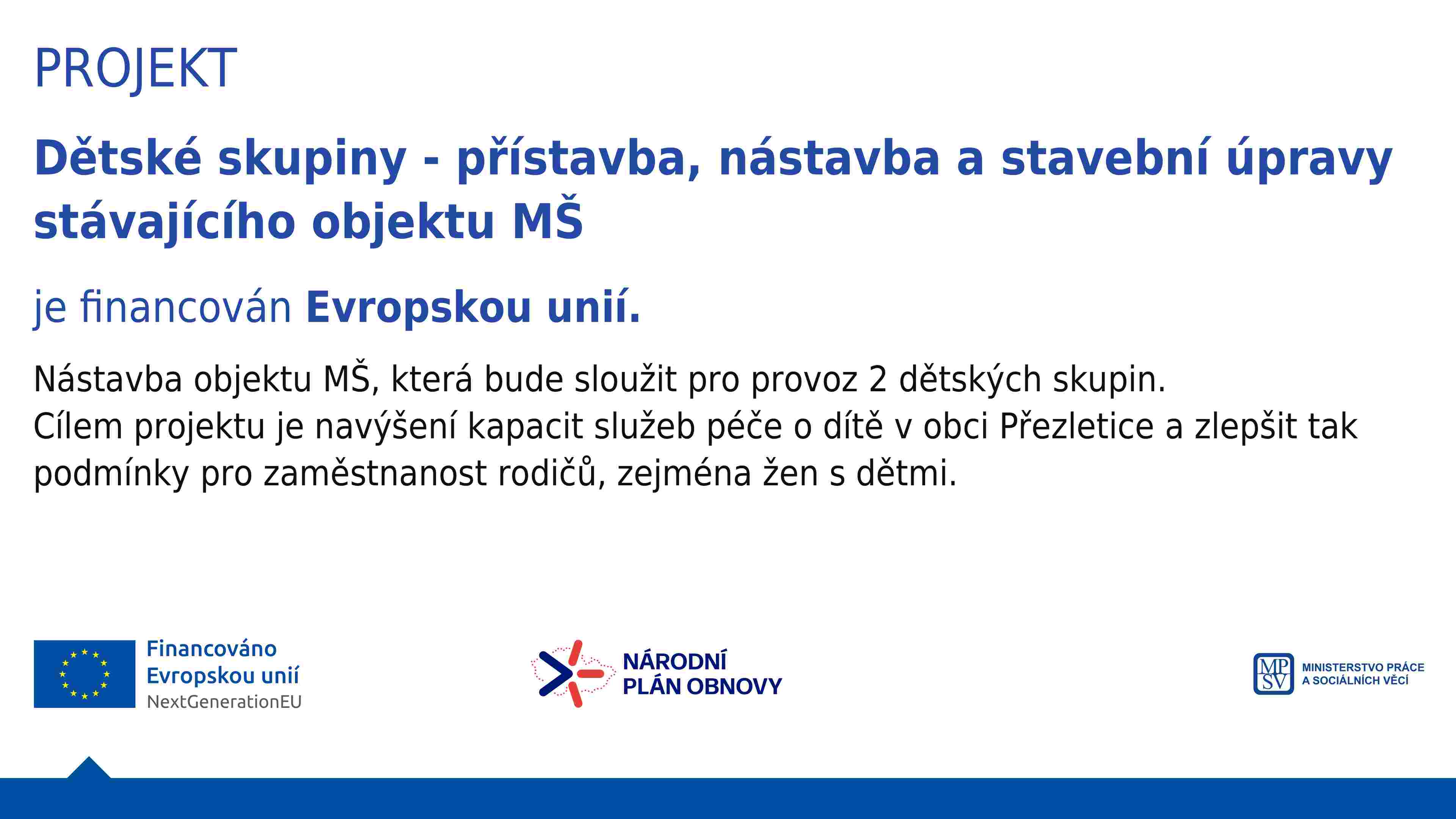 Dětské skupiny - přístavba, nástavba a stavební úpravy stávajícího objektu MŠ